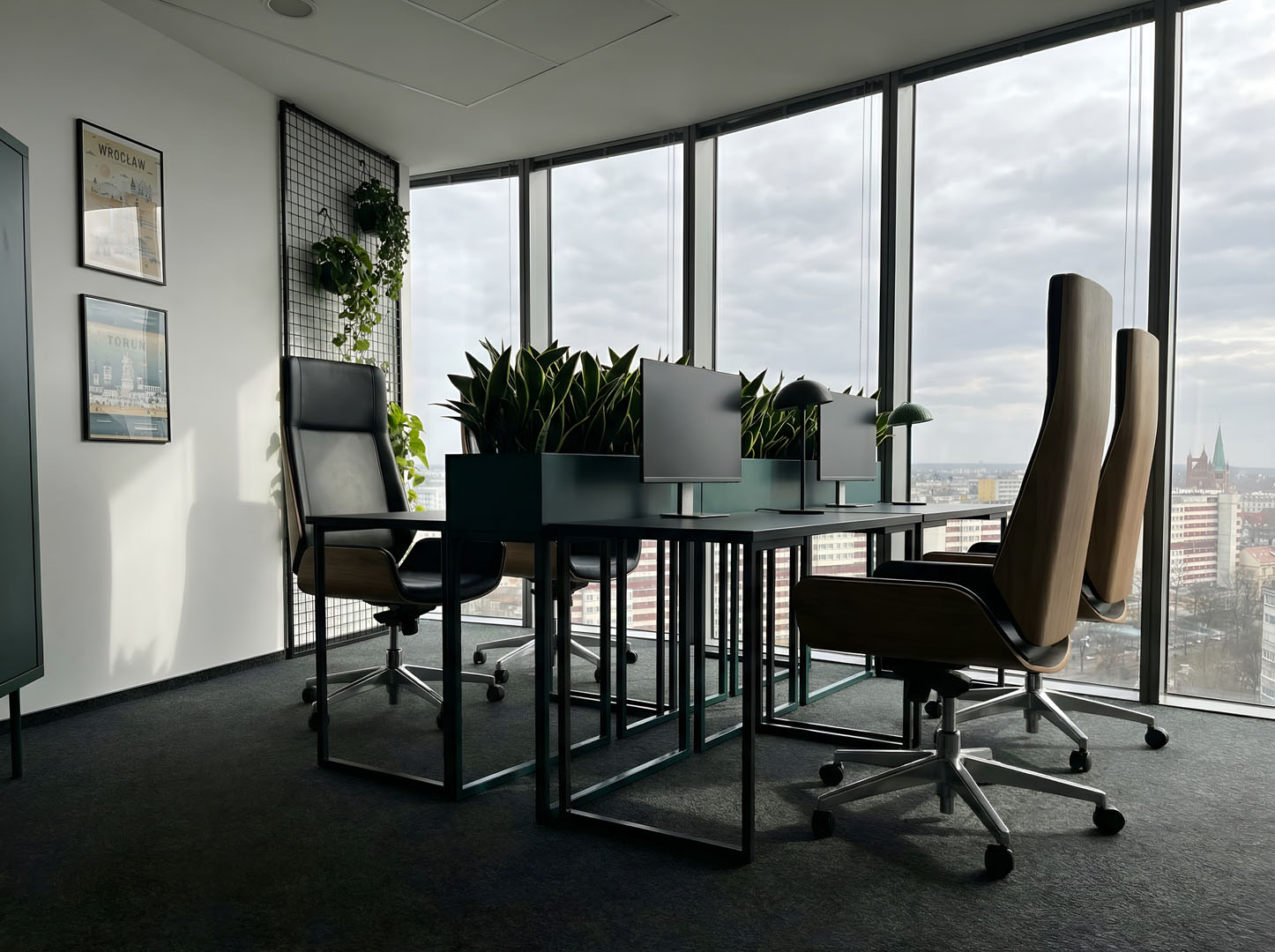 Projekt wnętrzaBiuro o powierzchni ok. 70 m2 zlokalizowane jest na 12 piętrze budynku Skytower. Przestrzeń składa się z 3 pomieszczeń- sali konferencyjnej oraz 2 sal biurowych łącznie na 8 stanowisk pracy.
